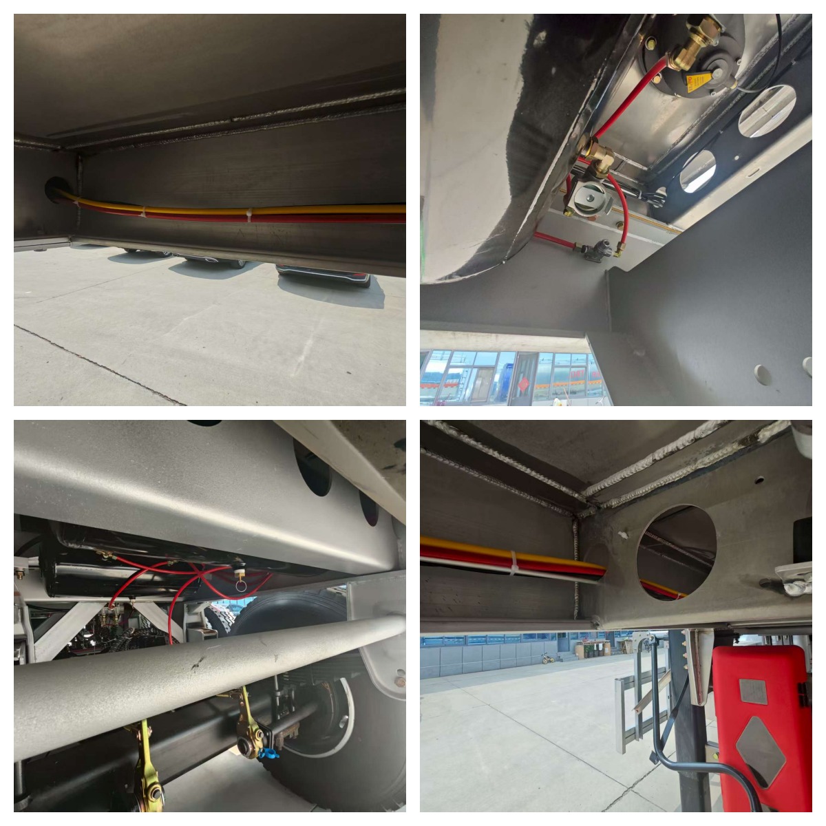 El cuerpo del Tank Body of Derun Semirrailer del tanque de aceite de tres ejes está hecho de acero al carbono de alta calidad o acero inoxidable, que tiene las ventajas de peso ligero, resistencia a la corrosión y alta resistencia para garantizar la seguridad del transporte de aceite. Dentro del tanque, hay varios compartimentos, cada uno de los cuales está equipado con puertos de entrada y salida independientes y válvulas de respiración para evitar que el aceite se agite y la fuga, y al mismo tiempo, mejore la eficiencia de carga y descarga. El diseño de tres ejes asegura la estabilidad del remolque del tanque de aceite cuando está muy cargado. Los ejes delantero y trasero adoptan la suspensión de la placa de acero de alta resistencia, y el eje trasero adopta la suspensión de aire, que se combina con el sistema de frenado neumático de doble circuito para garantizar un frenado seguro y confiable. El sistema de tuberías del vehículo está hecho de acero inoxidable con una fuerte resistencia a la corrosión, lo que garantiza que la calidad del aceite no se vea afectada durante el transporte. Además, el semirremolque de tanque de aceite de tres ejes de Derun está equipado con tanques de combustible de aleación de aluminio de gran capacidad y tanques de gas, con un rango fuerte, reduciendo el número de reabastecimiento de combustible a mitad de camino y mejorando la eficiencia operativa.